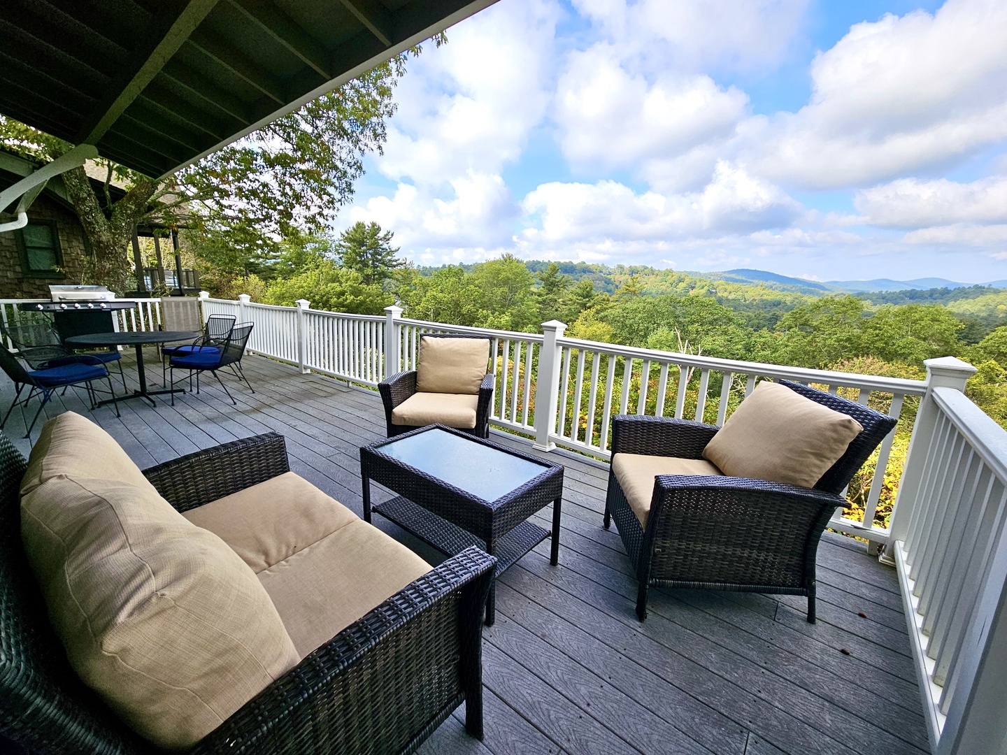 Want to get away from the hectic life? Head to the Britton House in beautiful Highlands, N.C. Nestled at the end of a quiet street, this mountain home is meant for relaxing. Whether you are drinking coffee and admiring the morning sunrise from a front porch rocker, or grilling on the deck and watching a spectacular sunset, this is the place for you. The Britton House features a great room with spectacular views where you can sit by the fire, read a book, or work on a puzzle. And if you want to be connected to the outside world, we have Internet and 2 Fiber TVs. The master bedroom (King) has unimpeded views of the Blue Ridge mountains. The guest room features 2 Twin beds and a pac-n-play portable bed for a baby. You'll love the rhododendron and wildflowers in the Summer and gorgeous leaves in Autumn.