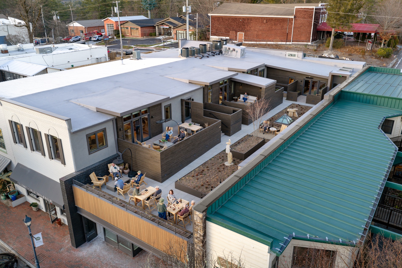 Oak Over Main is a brand new collection of four luxury lofts on a rooftop in the center of downtown Highlands. Each loft features high-end finishes, heated bathroom floors, Le Labo bath amenities, Nespresso coffee, full kitchens, NetZero electric fireplaces, Wi-Fi, Samsung Smart TVs, private rooftop decks with outdoor heaters, and exclusive access to Oak Over Main’s rooftop garden patio, with a bird’s-eye view of Main Street.