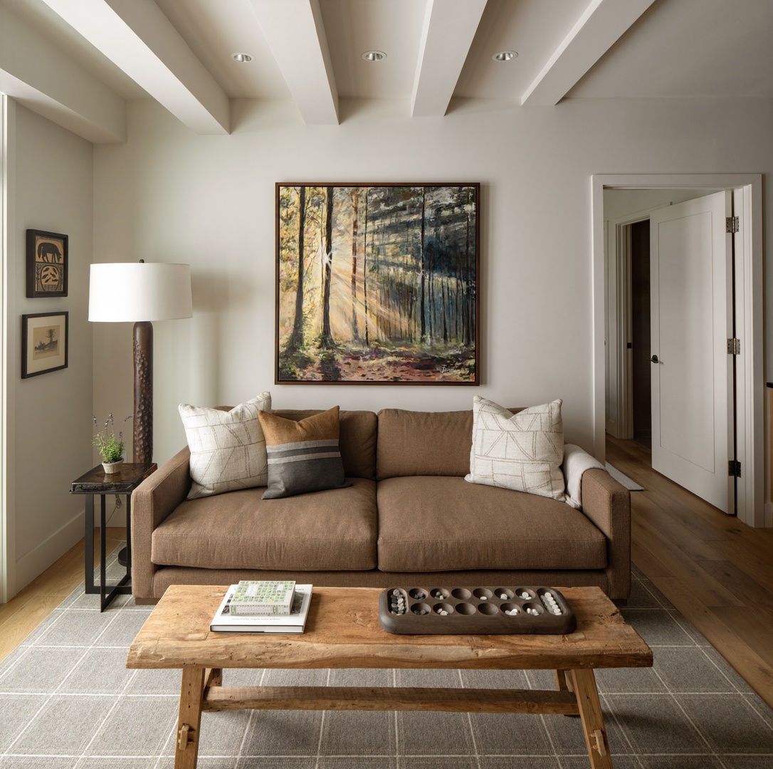 Summit at Oak Over Main is a cozy one-bedroom, one-bathroom Loft with bedroom views of our rooftop garden and living room views of our rooftop garden and sunset rock. With earthy, eclectic interiors inspired by the Blue Ridge Mountains, all of Oak Over Main’s lofts feel cozy, inviting, and refined. Summit’s kitchen with a peninsula makes dining and entertaining effortless, and the private deck is the perfect spot to enjoy a glass of wine after a walk into town.